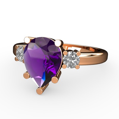 Ametist ve beyaz zirkon 8 ayar rose altın yüzük