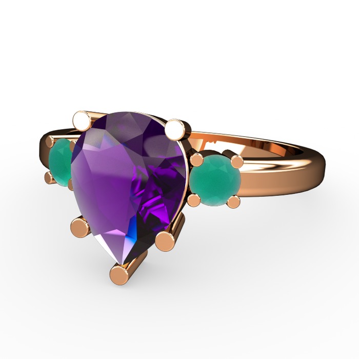 Ametist ve kök zümrüt 14 ayar rose altın yüzük
