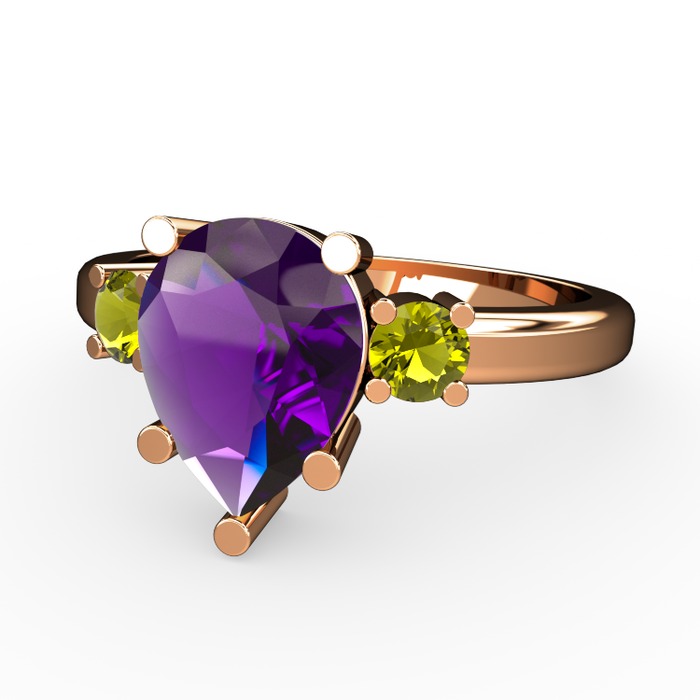 Ametist ve peridot 925 ayar rose altın kaplama gümüş yüzük