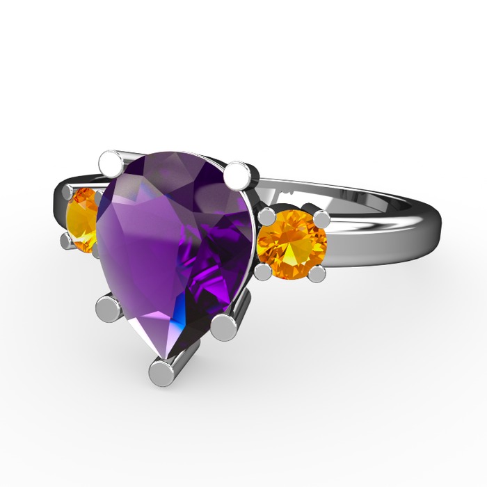Ametist ve sitrin 14 ayar beyaz altın yüzük