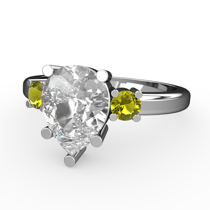 Beyaz zirkon ve peridot 14 ayar beyaz altın yüzük