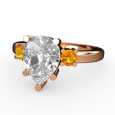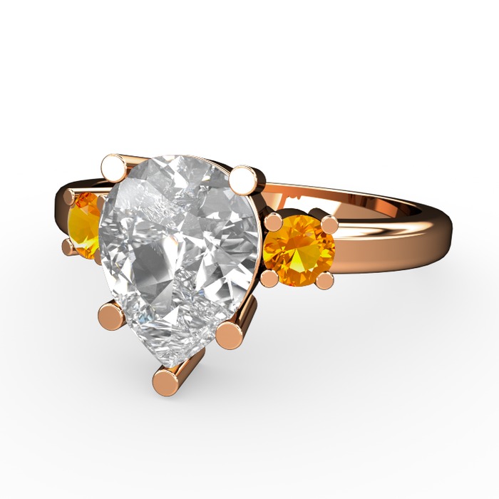 Beyaz zirkon ve sitrin 18 ayar rose altın yüzük