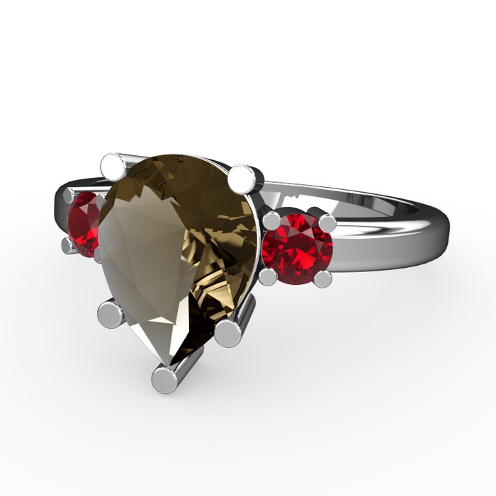 Dumanlı kuvars ve garnet 14 ayar beyaz altın yüzük