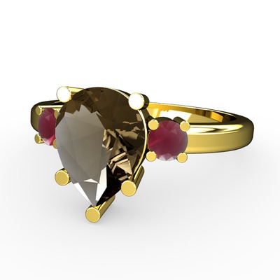 Dumanlı kuvars ve kök yakut 18 ayar altın yüzük