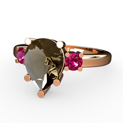 Dumanlı kuvars ve rodolit garnet 14 ayar rose altın yüzük