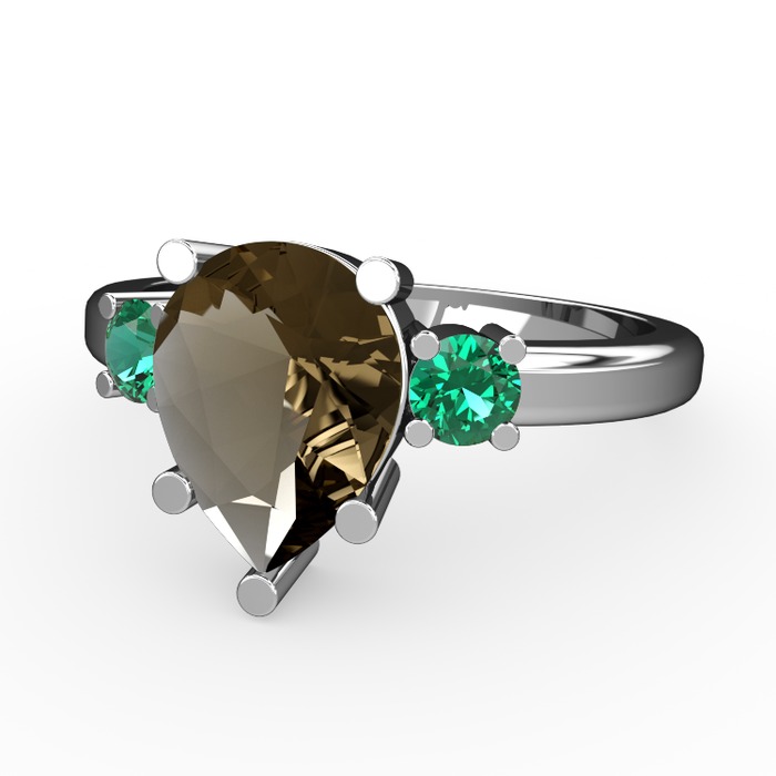 Dumanlı kuvars ve yeşil kuvars 18 ayar beyaz altın yüzük