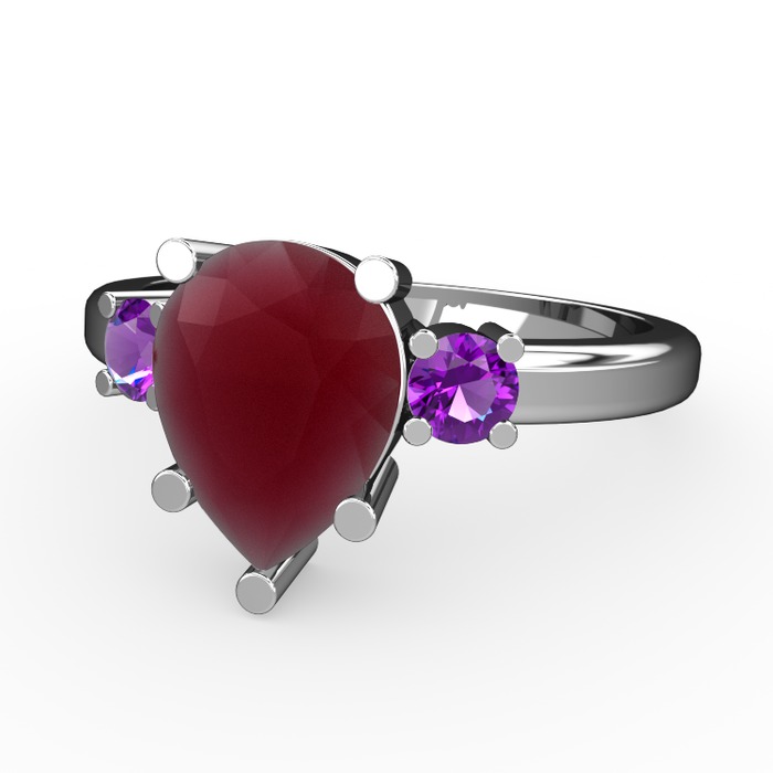 Kök yakut ve ametist 8 ayar beyaz altın yüzük