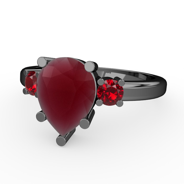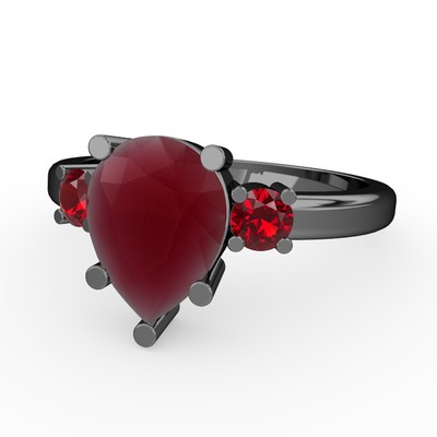 Kök yakut ve garnet 925 ayar siyah rodyum kaplama gümüş yüzük