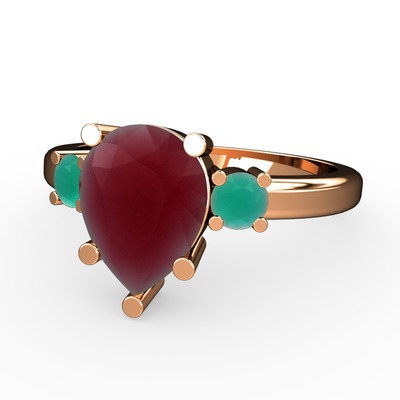 Kök yakut ve kök zümrüt 925 ayar rose altın kaplama gümüş yüzük