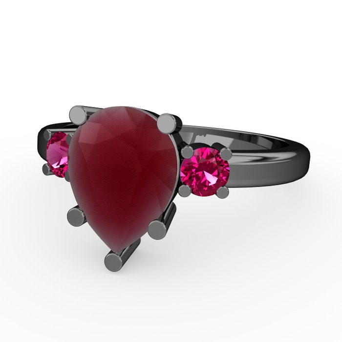Kök yakut ve rodolit garnet 925 ayar siyah rodyum kaplama gümüş yüzük