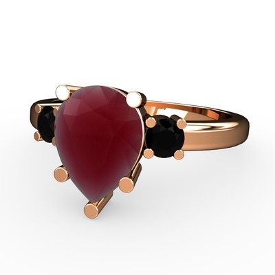 Kök yakut ve siyah zirkon 8 ayar rose altın yüzük