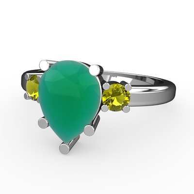 Kök zümrüt ve peridot 8 ayar beyaz altın yüzük