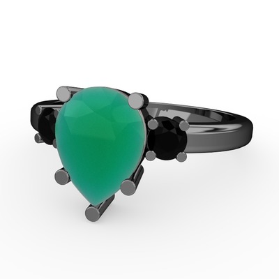 Kök zümrüt ve siyah zirkon 925 ayar siyah rodyum kaplama gümüş yüzük