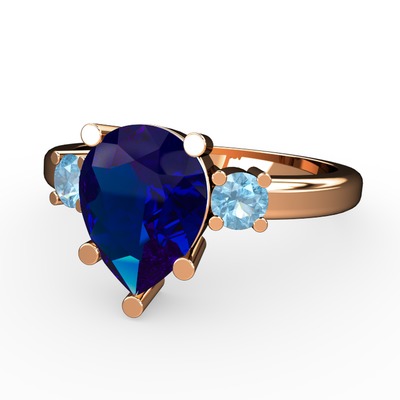 Lab safir ve akuamarin 14 ayar rose altın yüzük