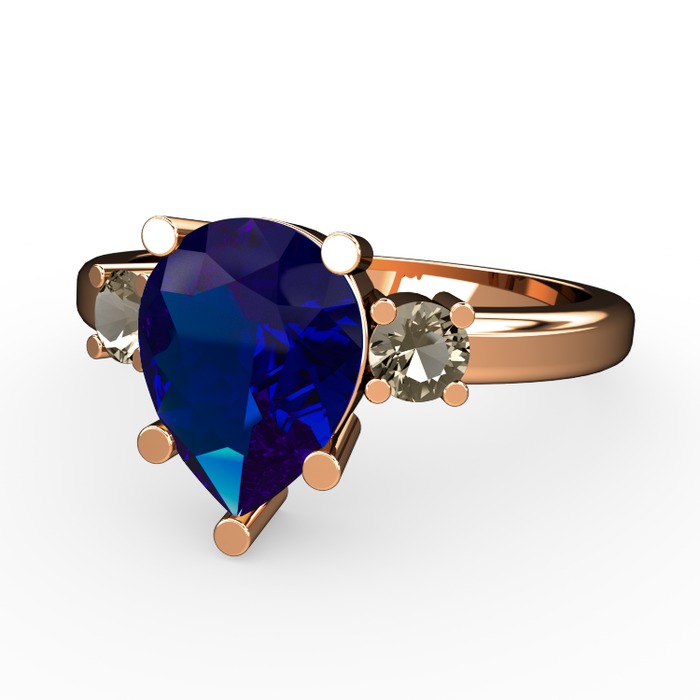 Lab safir ve dumanlı kuvars 8 ayar rose altın yüzük