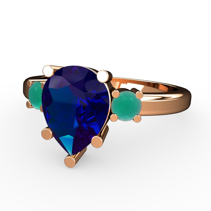 Lab safir ve kök zümrüt 925 ayar rose altın kaplama gümüş yüzük
