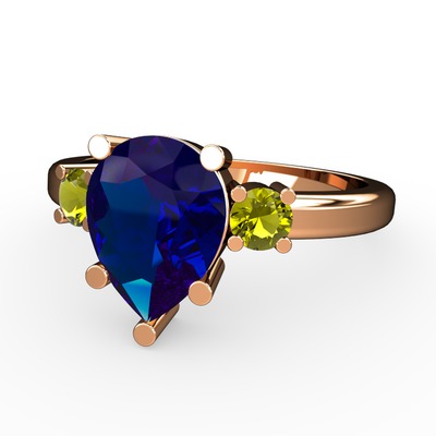 Lab safir ve peridot 14 ayar rose altın yüzük
