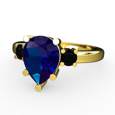 Lab safir ve siyah zirkon 925 ayar altın kaplama gümüş yüzük