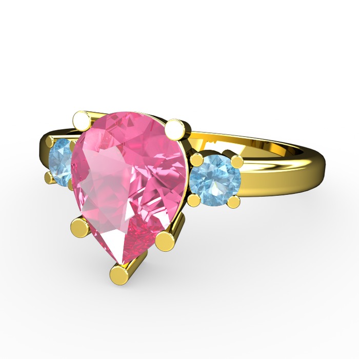 Pembe kuvars ve akuamarin 18 ayar altın yüzük