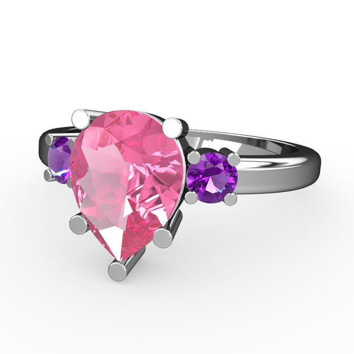 Pembe kuvars ve ametist 14 ayar beyaz altın yüzük