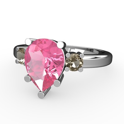 Pembe kuvars ve dumanlı kuvars 8 ayar beyaz altın yüzük