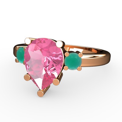 Pembe kuvars ve kök zümrüt 14 ayar rose altın yüzük