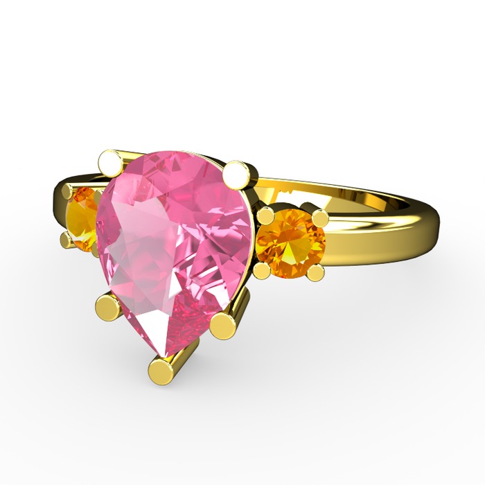 Pembe kuvars ve sitrin 8 ayar altın yüzük