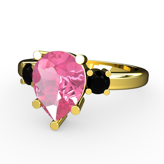 Pembe kuvars ve siyah zirkon 14 ayar altın yüzük