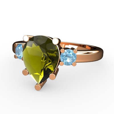 Peridot ve akuamarin 925 ayar rose altın kaplama gümüş yüzük