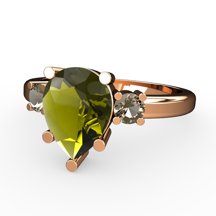 Peridot ve dumanlı kuvars 8 ayar rose altın yüzük