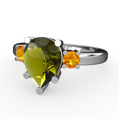 Peridot ve sitrin 14 ayar beyaz altın yüzük
