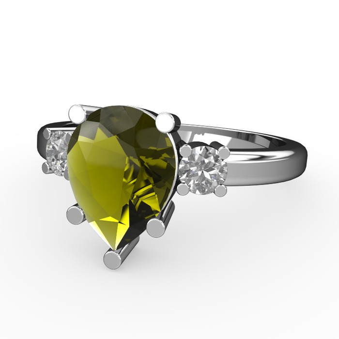 Peridot ve swarovski 14 ayar beyaz altın yüzük