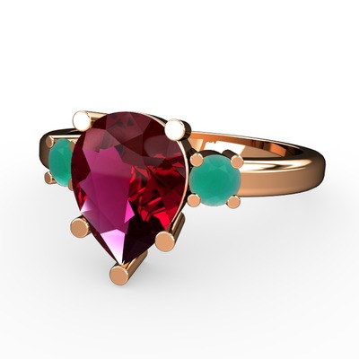 Rodolit garnet ve kök zümrüt 14 ayar rose altın yüzük