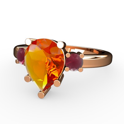 Sitrin ve kök yakut 925 ayar rose altın kaplama gümüş yüzük