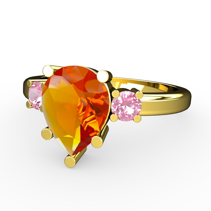 Sitrin ve pembe kuvars 14 ayar altın yüzük