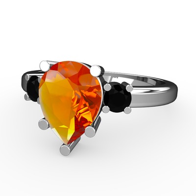 Sitrin ve siyah zirkon 18 ayar beyaz altın yüzük