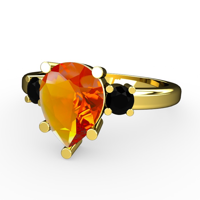 Sitrin ve siyah zirkon 925 ayar altın kaplama gümüş yüzük