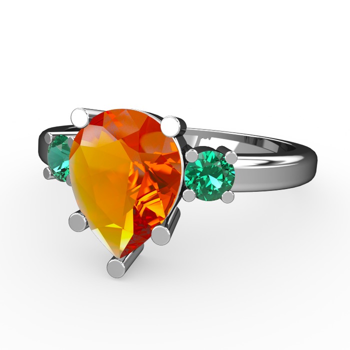 Sitrin ve yeşil kuvars 14 ayar beyaz altın yüzük