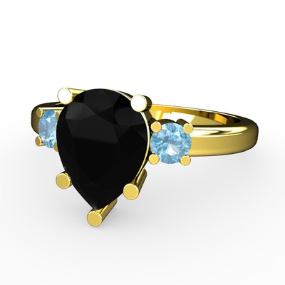 Siyah zirkon ve akuamarin 8 ayar altın yüzük