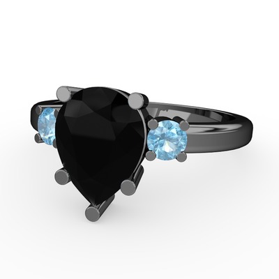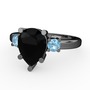 Siyah zirkon ve akuamarin 925 ayar siyah rodyum kaplama gümüş yüzük