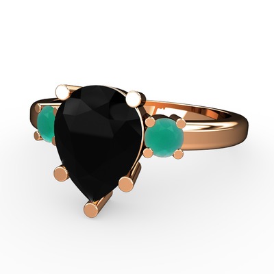 Siyah zirkon ve kök zümrüt 8 ayar rose altın yüzük