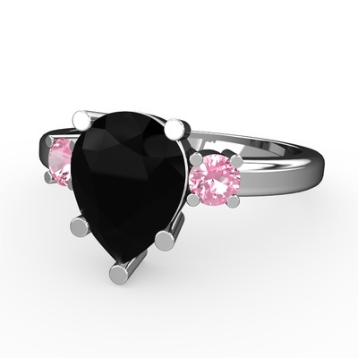 Siyah zirkon ve pembe kuvars 925 ayar gümüş yüzük
