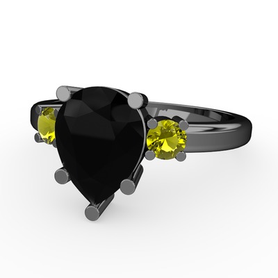 Siyah zirkon ve peridot 925 ayar siyah rodyum kaplama gümüş yüzük