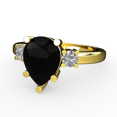Siyah zirkon ve pırlanta 14 ayar altın yüzük (0.22 karat)