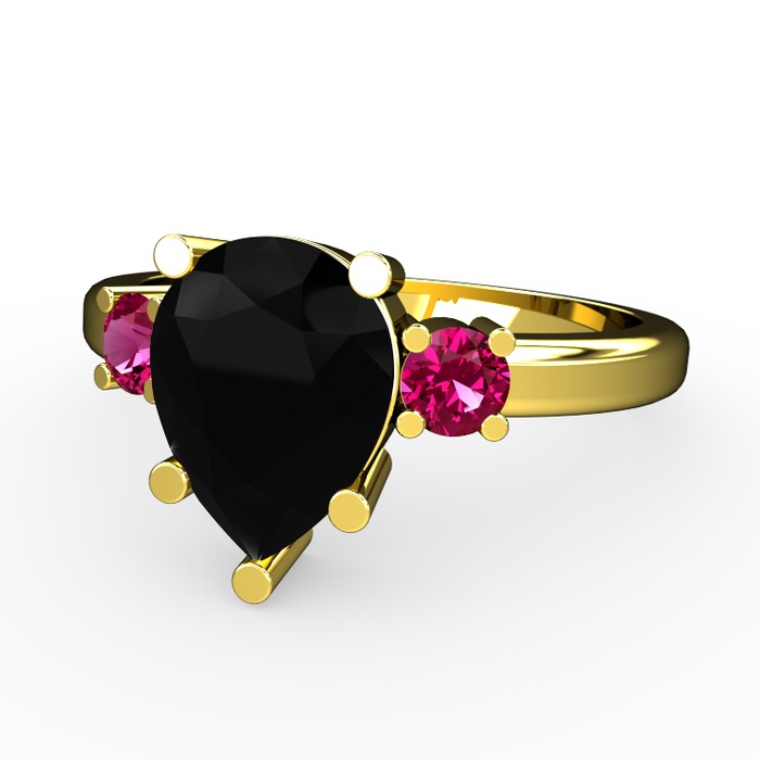 Siyah zirkon ve rodolit garnet 14 ayar altın yüzük