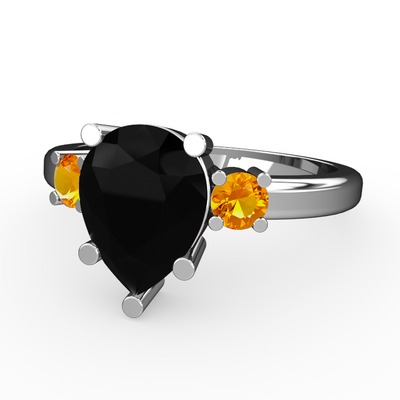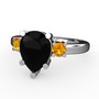 Siyah zirkon ve sitrin 18 ayar beyaz altın yüzük