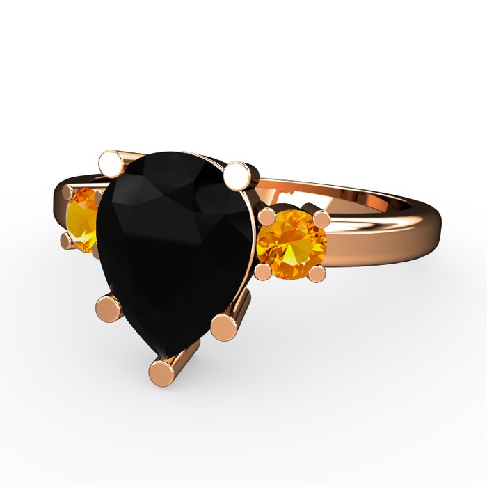 Siyah zirkon ve sitrin 18 ayar rose altın yüzük