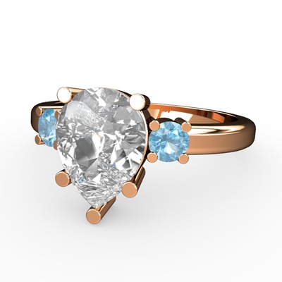 Swarovski ve akuamarin 14 ayar rose altın yüzük