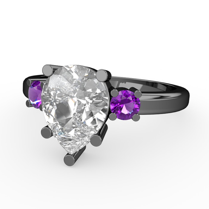 Swarovski ve ametist 925 ayar siyah rodyum kaplama gümüş yüzük