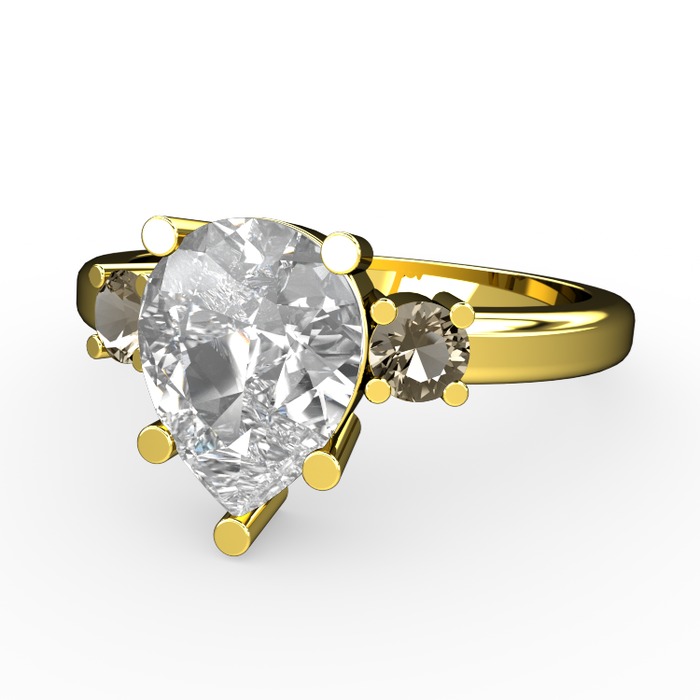 Swarovski ve dumanlı kuvars 8 ayar altın yüzük